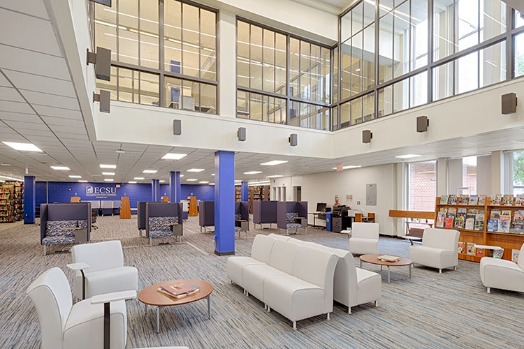 Moore Hall is one of ECSU’s oldest buildings and is listed on the National Historic Register. Originally constructed in 1922, it has been used for a variety of campus activities throughout its nearly 100-year history and includes a 380 fixed-seat auditorium. The G.R. Little Library was originally constructed in 1966 and was last renovated in 1988. The renovation of both buildings involved significant updates to both architectural finishes and MEP infrastructure.