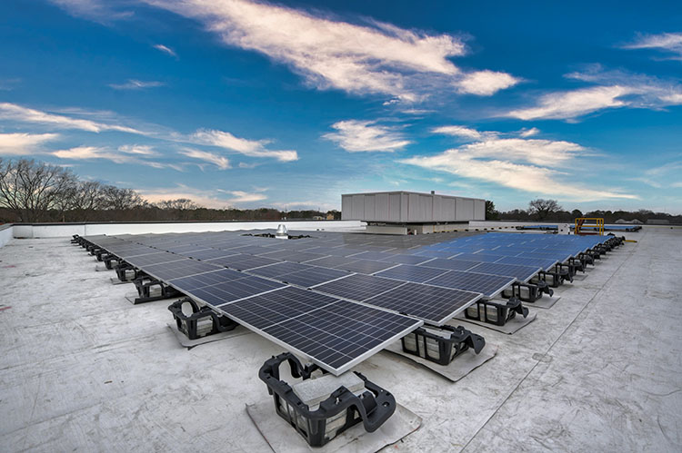 This rooftop photovoltaic array was designed and constructed for Plasser American’s new 45,000 square foot, three-story office building. Brite provided preconstruction cost and design analysis covering multiple system sizes and configurations. Through this process, a 60 kW ballasted roof-mounted system was selected and installed.